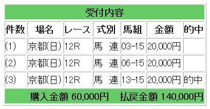 上記2頭らの3連単指示で704.8倍的中となり、42万2880円の払い戻しとなりました。