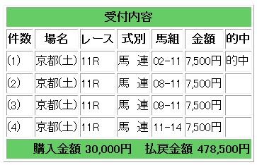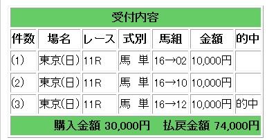 ↓昨年の秋の天皇賞は倍額勝負レースで36万7000円の払い戻しとなりました。