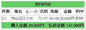 宝塚記念 3倍額大勝負レースで52万5000円獲得成功