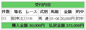 会員様情報では1パクスアメリカーナと6タワーオブロンドンとの馬連1点指示で10.5倍的中となり、31万5000円の払い戻しとなりました。